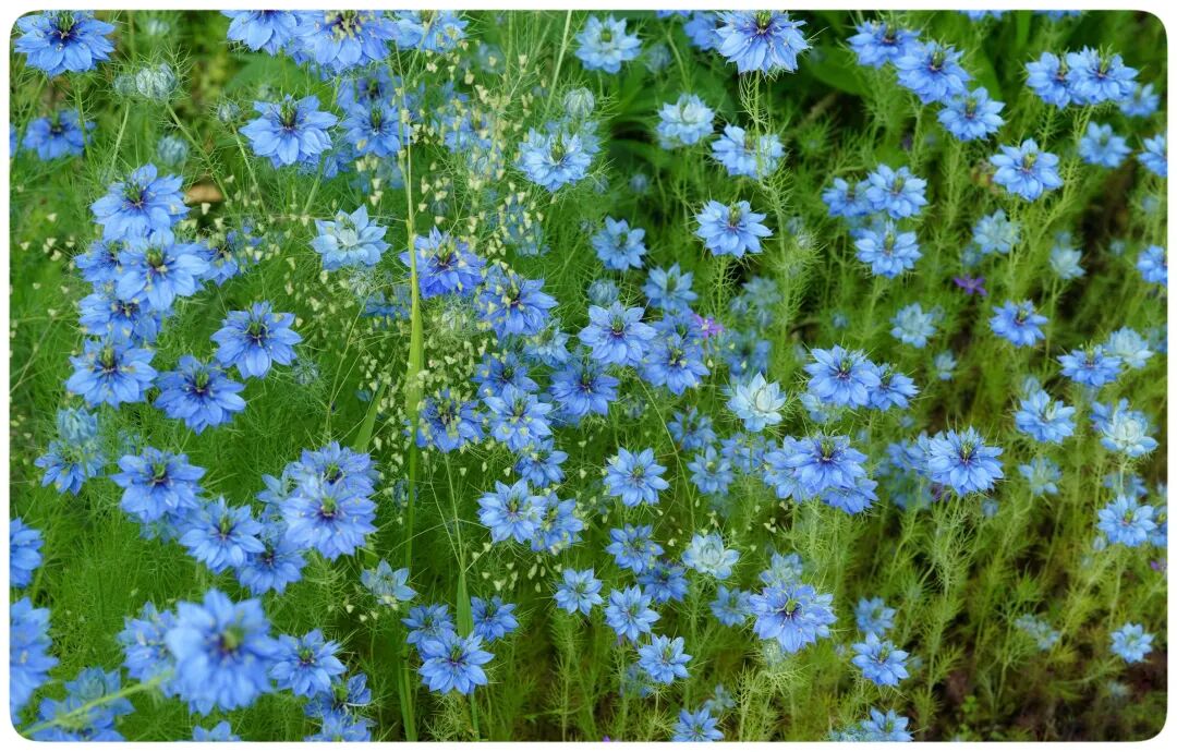Nigella sativa is an annual herb (35-60 cm high), and it also belongs to The flowers and leaves are special , and have high ornamental value flowers. Its flowers are very unique, with the leaves like traces of green silk threads, which are very dreamy. Flowering period June-July.