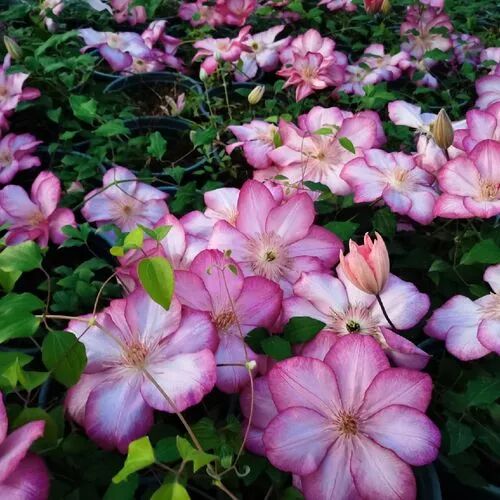Utopia is A very popular clematis (plant 2-3 m), almost everyone has one among iron fans. One of the most important factors that makes it so popular is its Flowering is very powerful , many flower lovers report that it can still bloom in winter. Its flower is a single-petal flower, with a flower diameter of about 15 cm, and the pink-white petals are smudged with purple red on the edges, which is gorgeous but not vulgar.