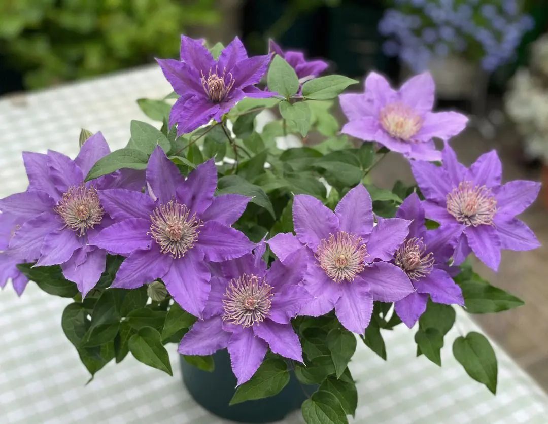 Cezanne It is a relatively short variety in the clematis family (the plant is at most 1.5 m). The plant is not big, suitable for raising on the balcony 。 Both new and old branches will bloom (usually single flowers, sometimes old branches will bloom double flowers), with a flower diameter of 10 ~ 12 cm, purple to sky blue color, fresh and elegant.