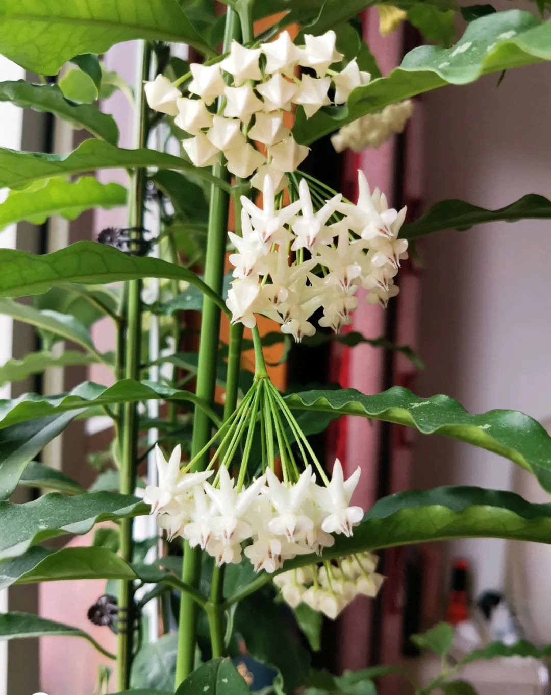 Silver hoya is a vine flower. Its prominent feature is that its leaves have silvery white spots, its flower color is more gorgeous (purple to crimson, the more light, the redder the flower color), and its flower fragrance is special: It's the smell of brown sugar + honey.