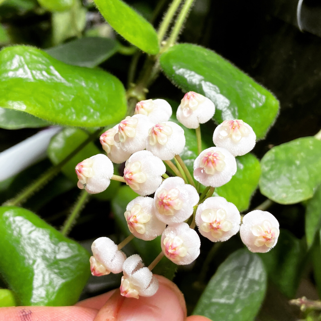 The special feature of Hoya split is that its flowers are round and lovely, which is a combination of white + light yellow, and has a furry feeling, which is very milky and cute. It also gives off a smell similar to cloves!