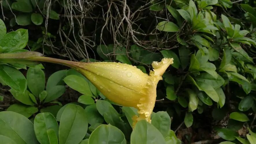 Jinbeihua is an evergreen vine shrub with huge flowers (flower diameter 18-20 cm, cup length about 20 cm), light yellow or golden yellow. Don't look at it flowering into the wine glass, the whole plant is poisonous, don't really pick it for fun!