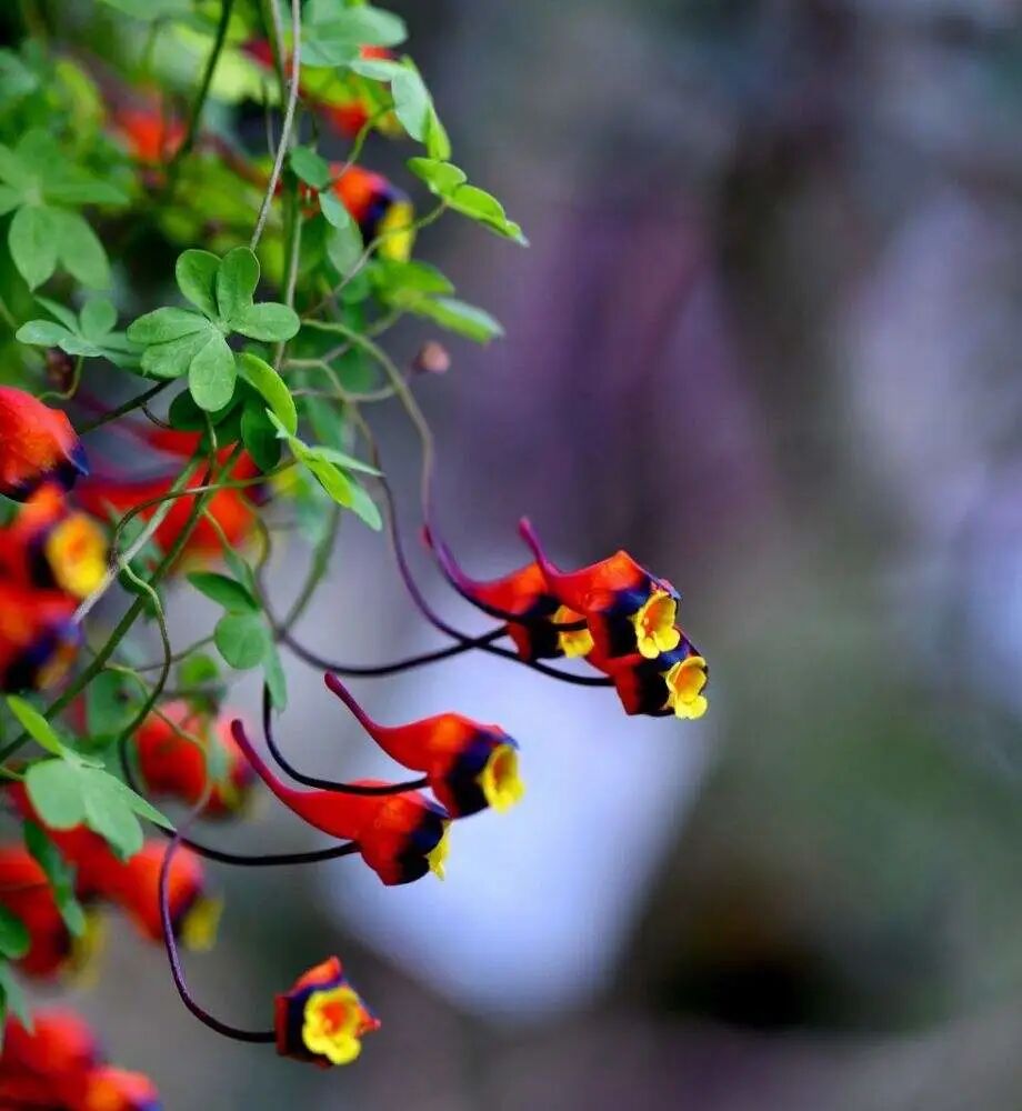 Tricolor nasturtium is a perennial vine, which is a special existence in the nasturtium family. The leaves are not common lotus leaf-shaped, and the flowers are not regular flowers. Instead, like goldfish, the colors are very rich. The same flower has red, purple and yellow at the same time.