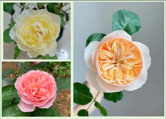 Compared to Juliet's apricot pink color, Hazy moonlight The color of the flower turned light goose yellow, Pink Juliet The color of the flower turned pink.