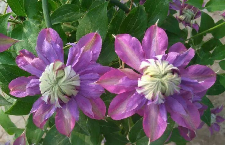 Double valve, Blue-purple, pink-purple flower colors, The petals are slender, Flower circle Run. Both new and old branches can bloom (old branches bloom intensively in April-May, and new branches bloom intensively in August-October).